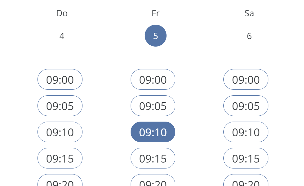 Es werden automatisch nur freie Zeiten in Ihrem Kalender angeboten. Dabei können Sie wählen welche Unterkalender für die Ermittlung der freien Zeiten berücksichtigt werden.